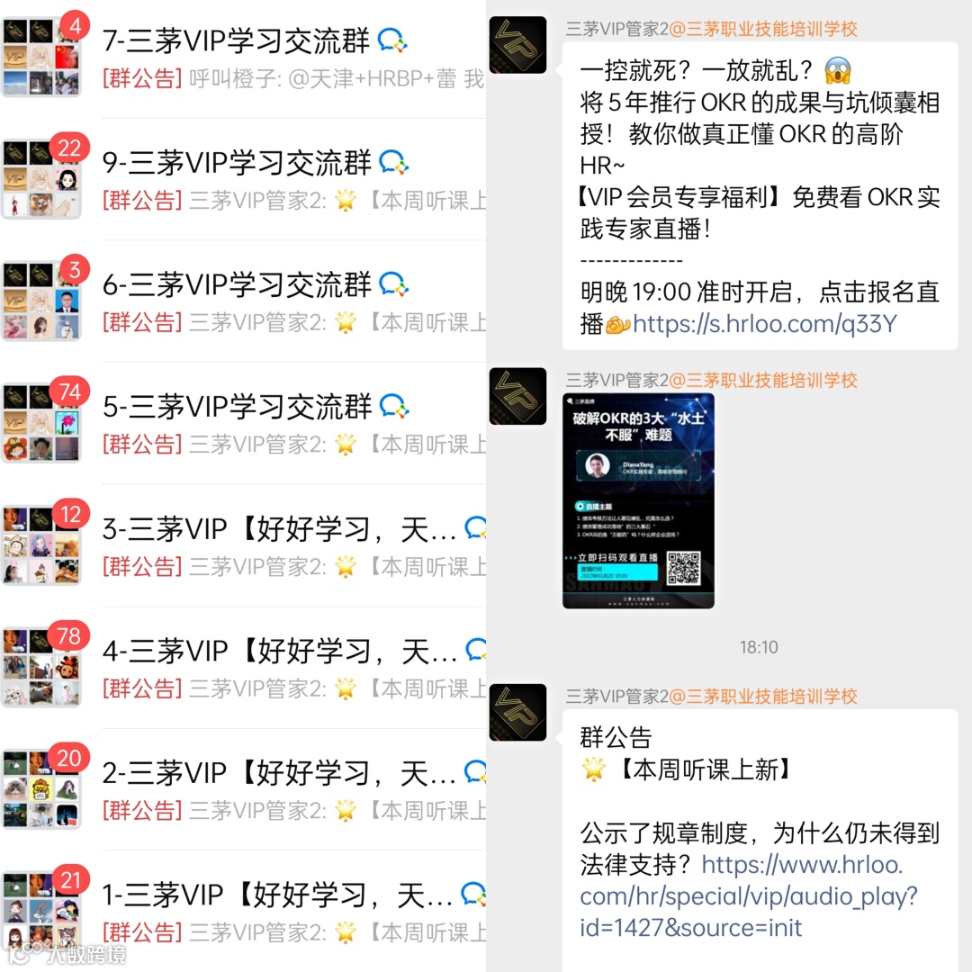 考虑到提升HR学习的互动氛围,我们还针对VIP定期举办HR大咖直播答疑,并在社群内提供持续解答。