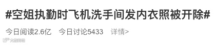 劳动争议民事判决书显示:乘务长郭某在某航班限流等待期间在飞机洗手间穿内衣自拍,并配“我穿后升杯了”等广告文字发朋友圈。