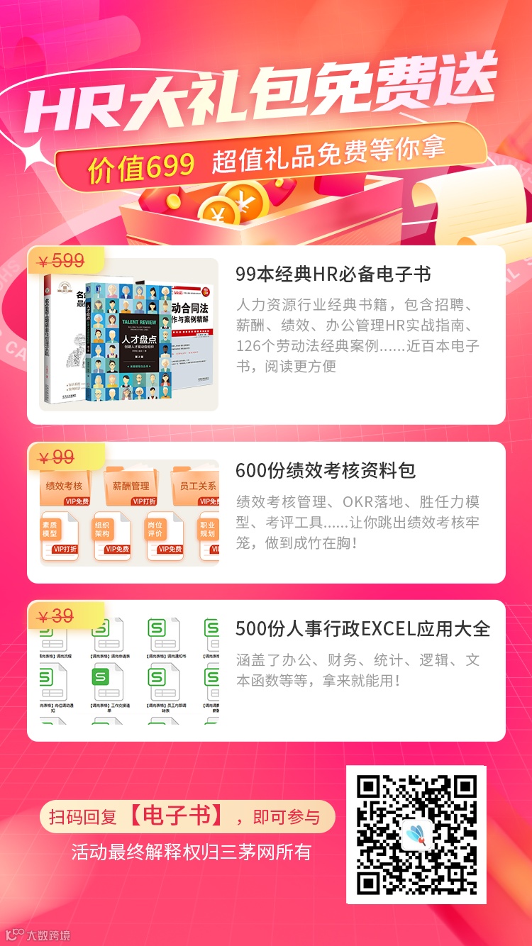 为此,茅姐给大家准备了一份书籍豪礼《99本HR专业电子书籍》,帮助各位实现电子化便捷读书方式。