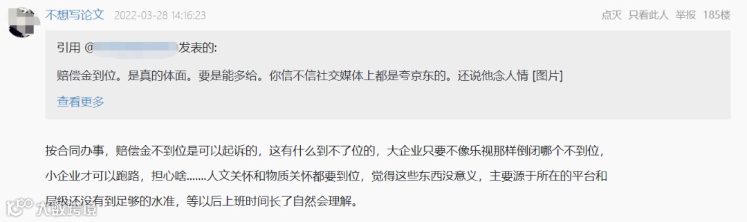 还有人觉得根本不用在意企业怎么称呼裁员,重要的是“赔偿到位”,从这个层面上,大家应该还要夸一夸京东。