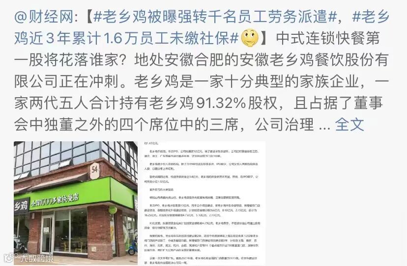 最近,老乡鸡因社保问题冲上了热搜。