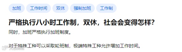 “遇到这种话题就有人哔哔落实双休,真是逻辑鬼才和自私达人,你自己享受不到双休应该反思自己能力为什么这么差,都不敢从一家辣鸡企业辞职,而不是对这种全民福祉说风凉话。这种屁话说的越多显得你越低端。”