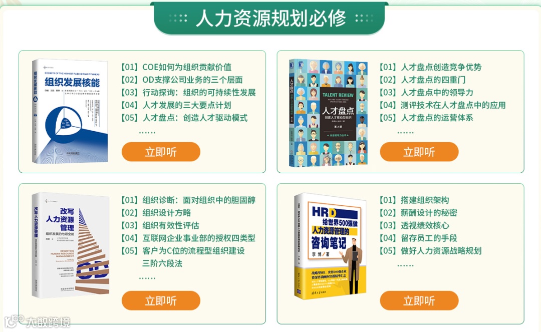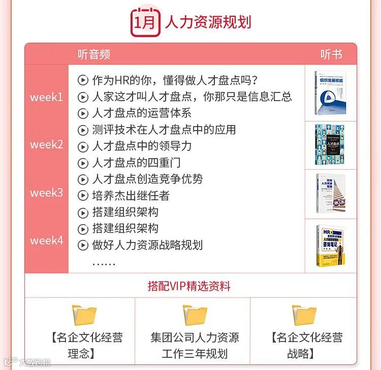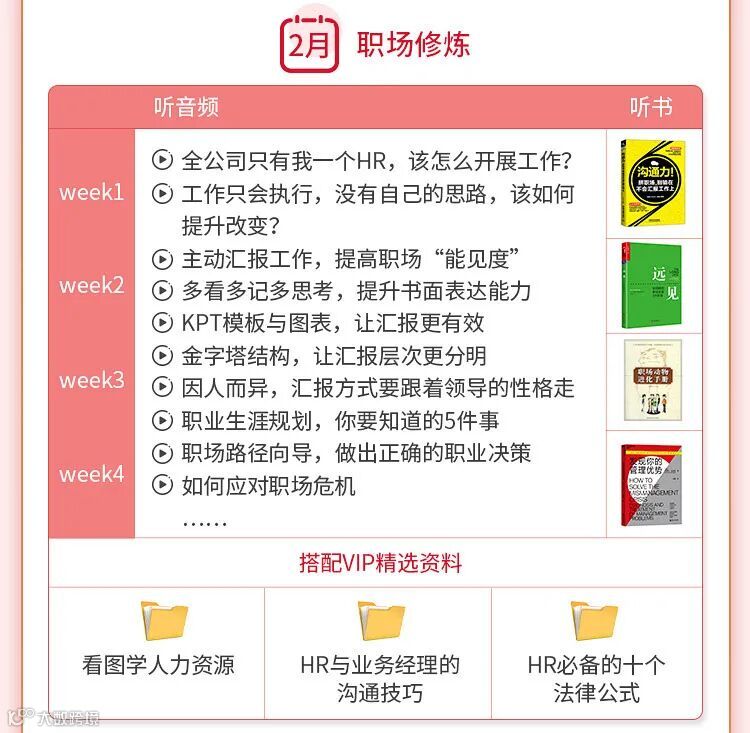 根据不同主题,配套150本相关专业书籍以及具体的场景式问答,利用碎片化时间,按照节奏稳步学习,成就全能型HR。