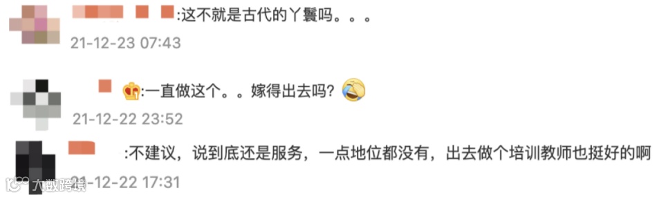 骂她是“古代的丫鬟”,说她“嫁不出去了”,鄙视她“说到底还是服务,没地位”。