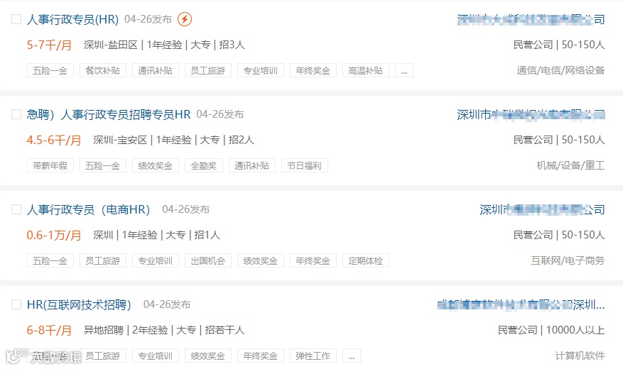 普通HR的薪资,工作职责是做招聘、邀面试、做绩效就可以了,而薪资大多在4K~8K之间。