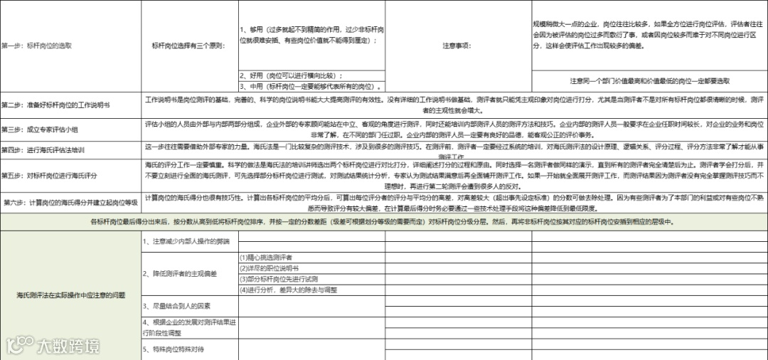 其中海氏评价系统是国际上使用最多的岗位评估方法,它有效地解决了不同职能部门的不同职务之间相对价值的相互比较和量化的难题。