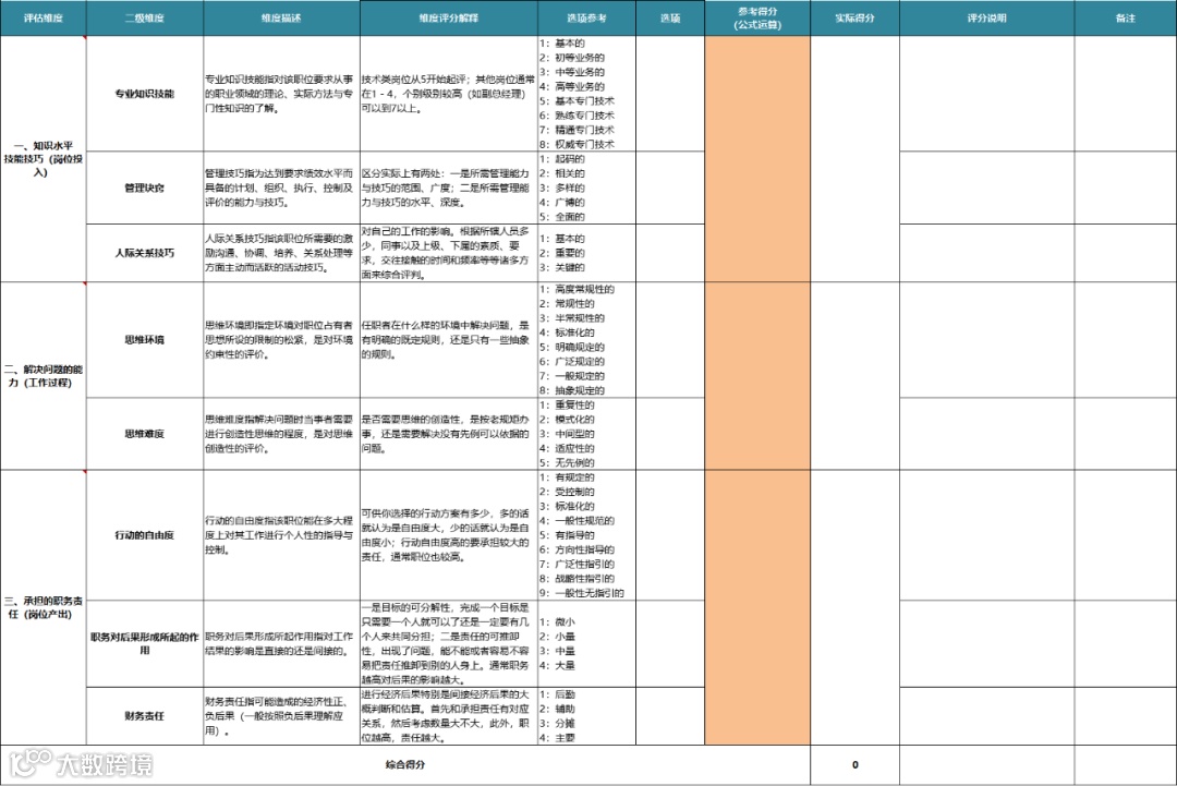 目前,比较常见的评分法有海氏(Hay Group)评价系统和美世(Mercer)职位评估体系两类。