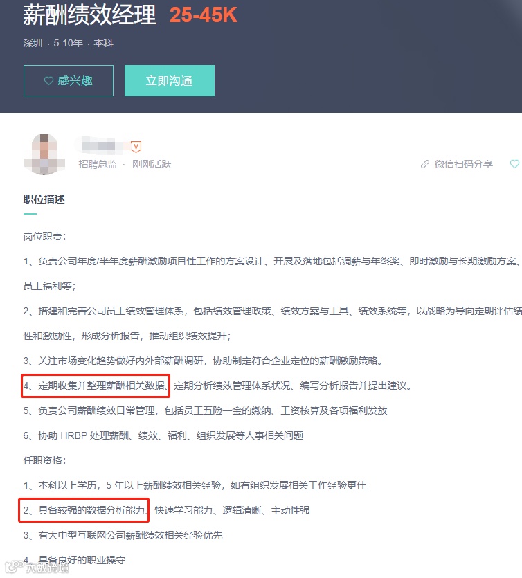 市场上面的薪酬岗位,无论你是专员还是经理岗位JD,都要求具有数据分析能力。