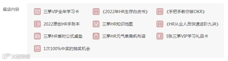 我们在全年学习计划的基础上更为大家准备了10大学习伴手礼,组成“2022年度HR福袋”。只要498元,就能带走原价1952元的学习礼包,低至2.5折,趁现在赶紧入手!