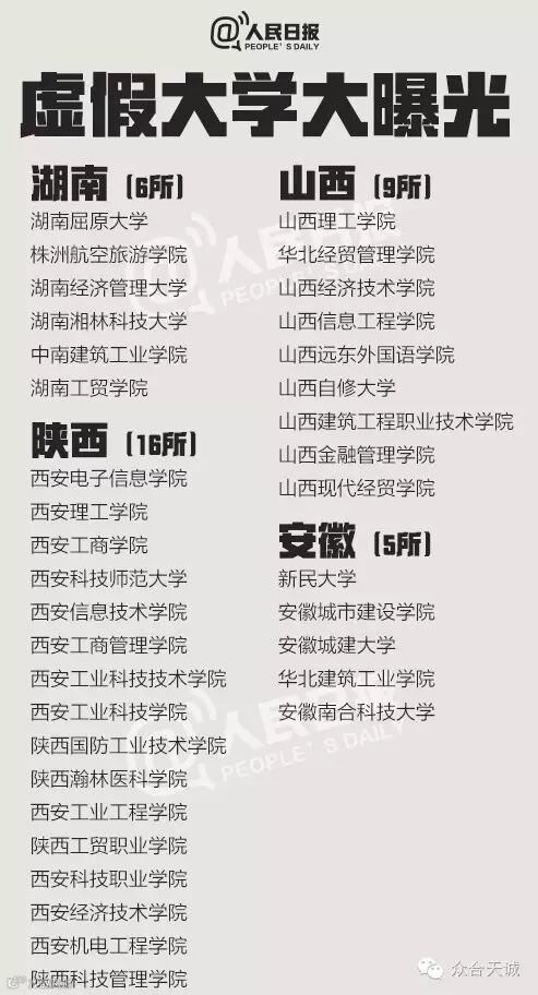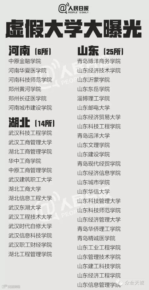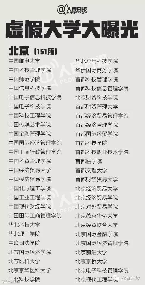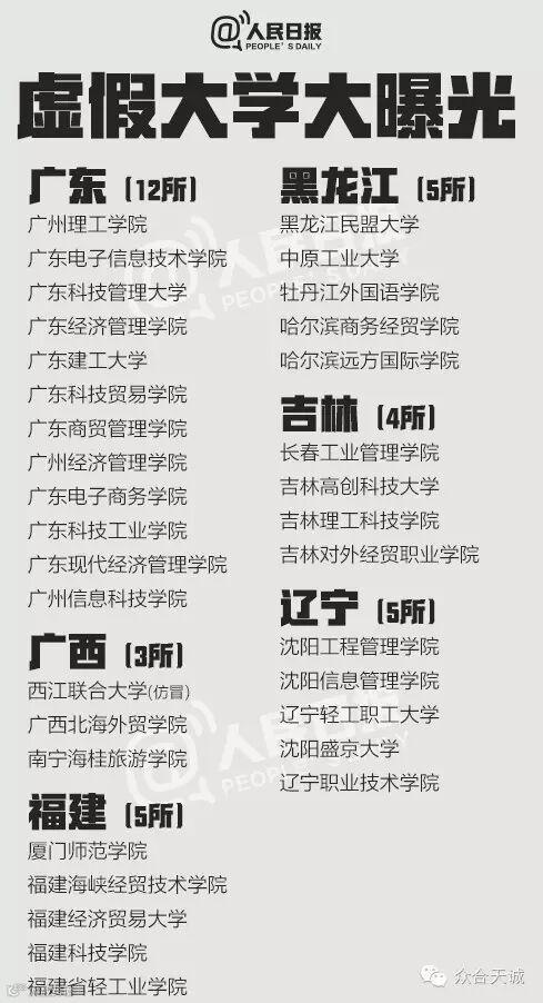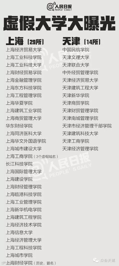 离高考公布成绩剩下最后三天,“虚假高校”也要开始作祟了。上大学网从2013年到2016年共曝光5批虚假大学名单,一些虚假学校被曝光多次仍换个域名继续存在。这些学校绝大部分仿冒正规高校名称,连学校简介也是抄袭拼凑而来。381所最全名单↓↓