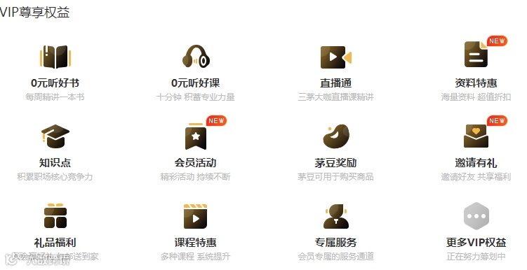 ——独属于三茅VIP的权益,包含大咖问诊、课程折扣、考证折扣等。