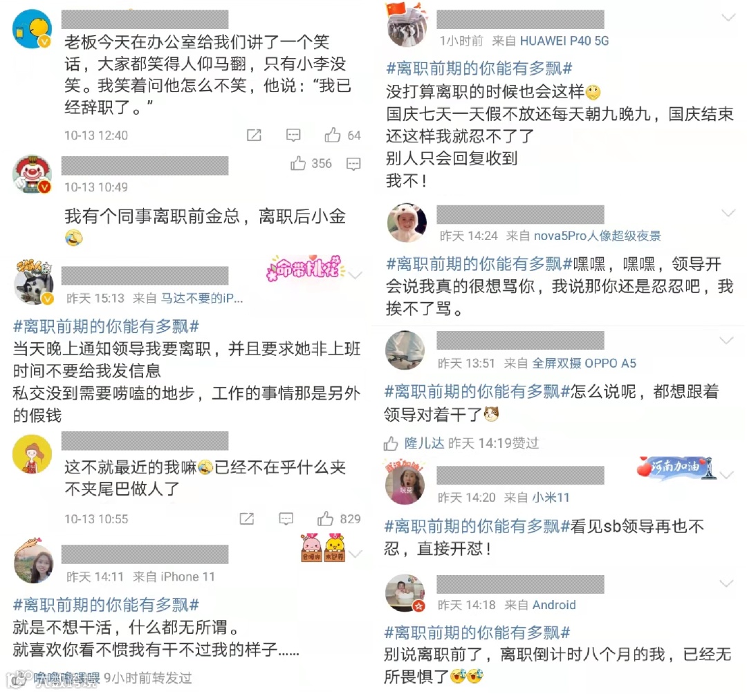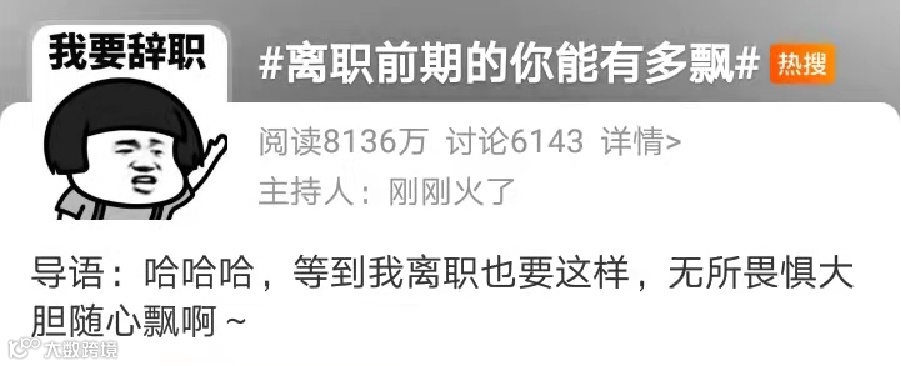 微博上“离职前期的你能有多飘”冲上热搜,引发八千多万网友共鸣。