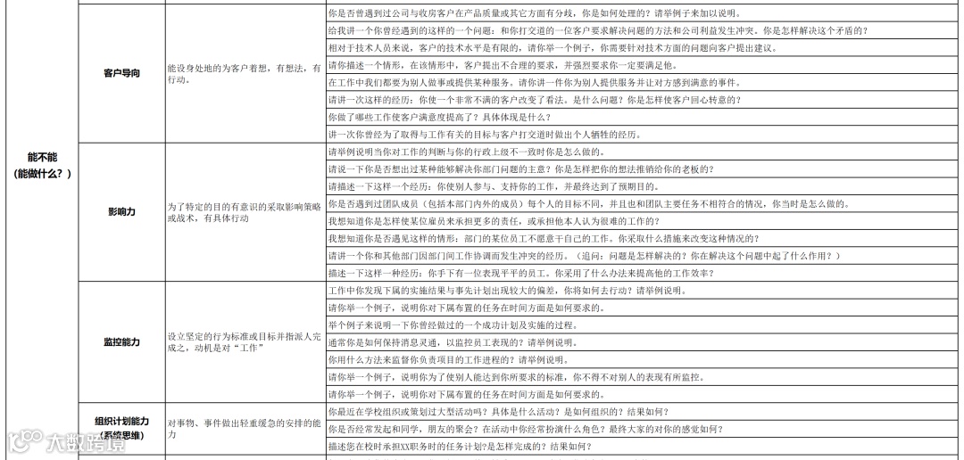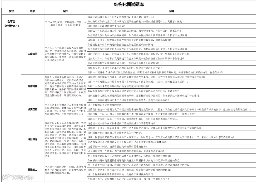 这份资料经过多次实践,效果非凡!帮助HR根据岗位分析设计问题,统一评价标准和方法,大大提升HR招聘工作效率!