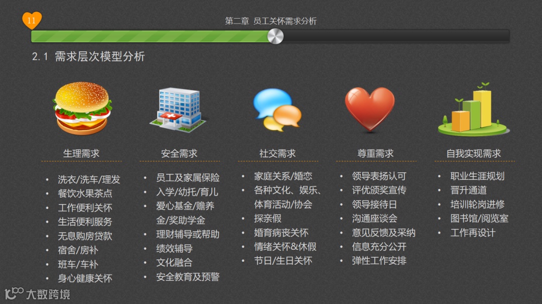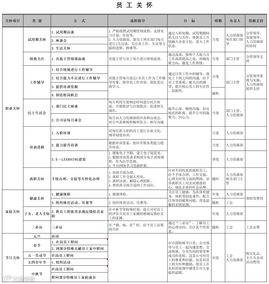 员工关怀体现公司对员工的人性化管理和关怀,并以此增进员工对公司的认同感和归属感,从而与公司共同成长。