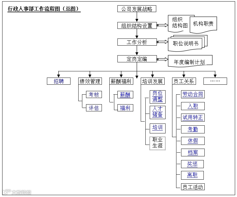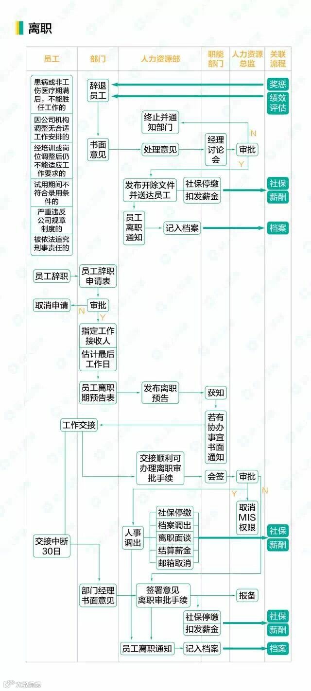 涵盖了:员工入离职/招聘培训流程/薪酬操作流程/绩效管理考核以及评估/考勤社保休假劳动合同档案等流程+六大模块思维导图。