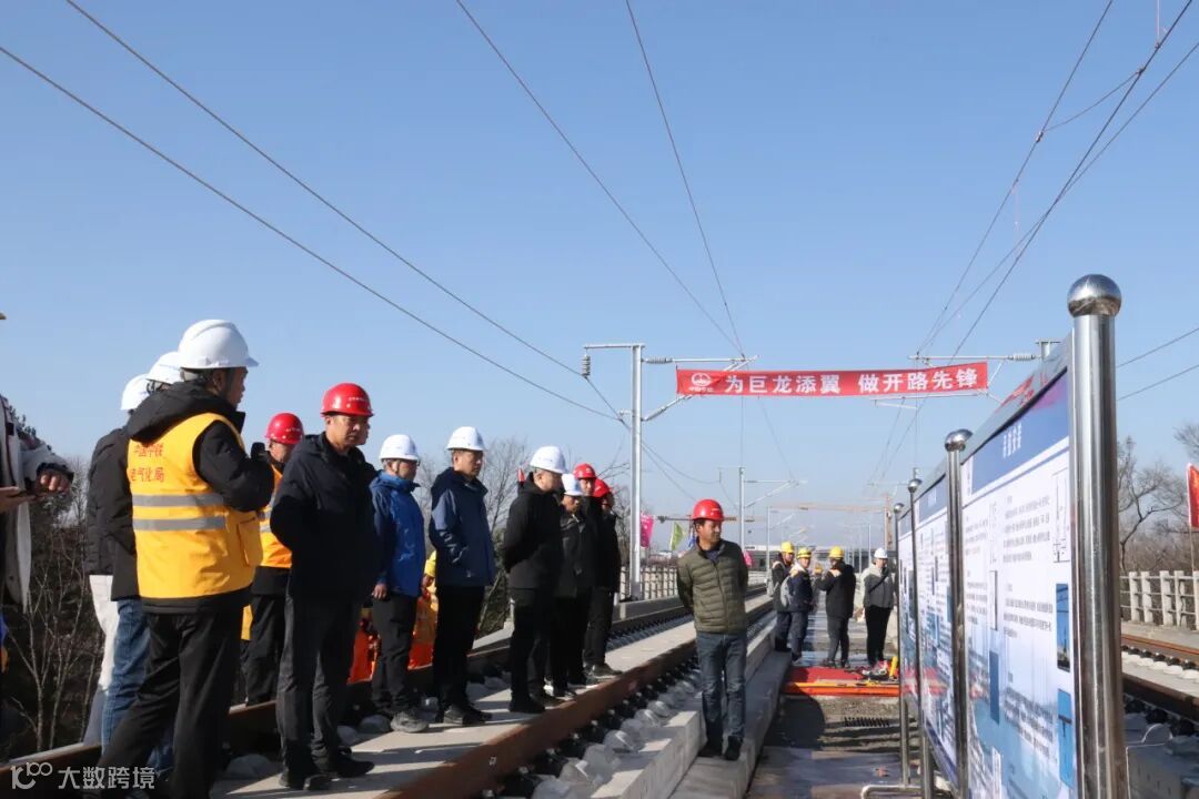 接触线是高铁列车的“生命线”,是供电系统施工中一个重要工序,作为电气化铁路运营的电流传输通道,直接影响着列车运行速度和供电质量。为确保高质量完成首条接触线架设工作,为后续施工做好首件引领示范,项目部通盘考虑、缜密谋划,细化施工组织、扎实开展作业人员安全技术交底,优化冬季施工高空作业规范方案。施工现场恒张力放线车启动、转盘翻滚,随着作业人员熟练进行起锚、悬挂滑轮固定、放线、落锚等工序操作,管段内2个锚段共2.48条公里接触线成功架设。