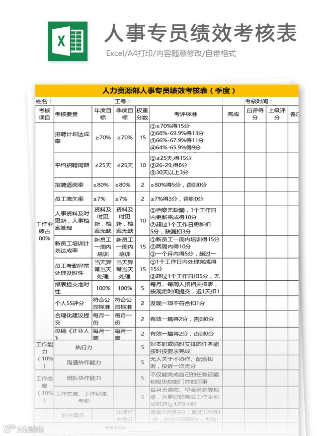 绩效表格模板(26套)