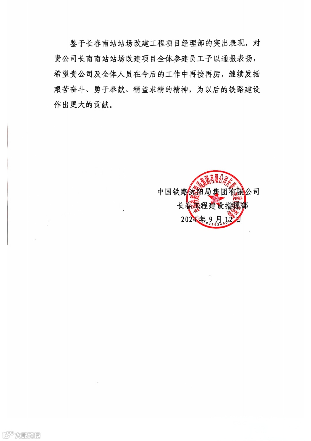 增强了到发作业能力,而且更好地满足了一汽公司汽车发运需求,全面提高了运输效率。项目部得到沈阳铁路局长春工程建设指挥部的好评,收获了表扬信。