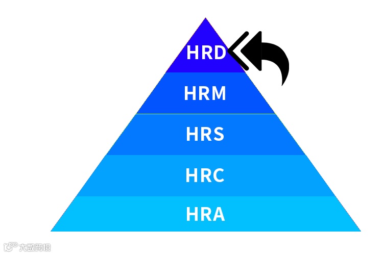 HRA(人事助理)→HRC(人事专员)→HRS(主管)→HRM(经理)→HRD(总监)