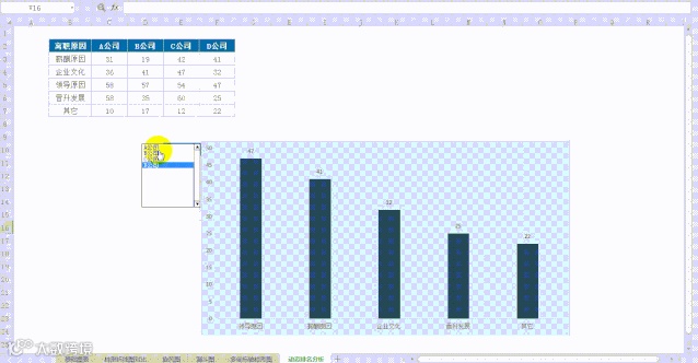 比如员工离职原因分析,做好基础图表后,可从大到小排序自动生成动态图表: