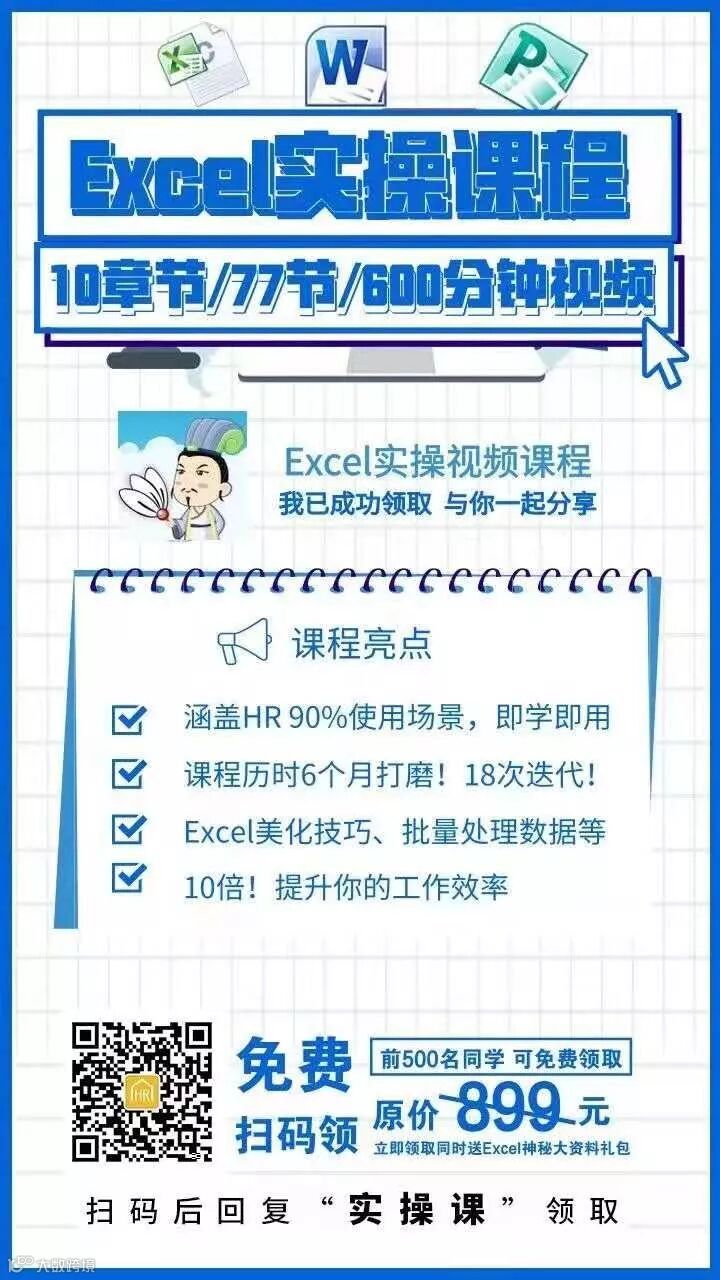 话不多说,上硬货!!今天免费福利:《Excel实操课程》10章节77节视频课,600分钟总课长,讲透HR90%以上的工作场景,10倍提升工作效率!