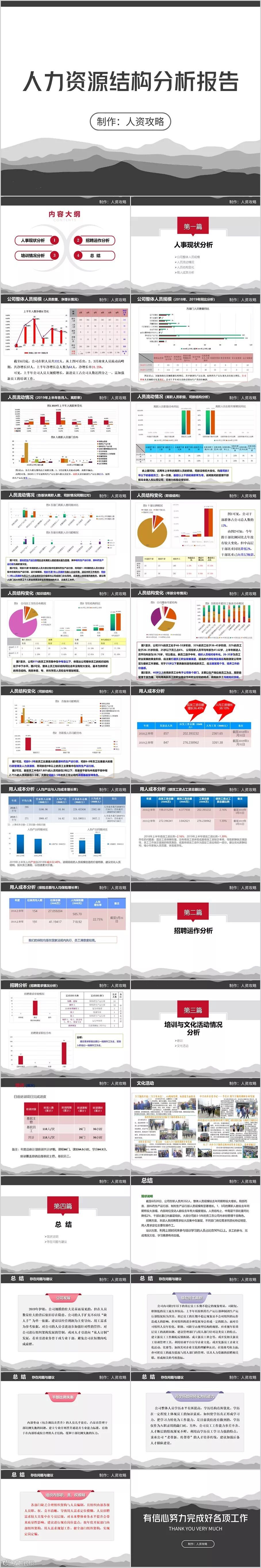 3套人员结构分析PPT,图表文字兼备,适合各类场合的人力数据报告。部分PPT截图展示如下: