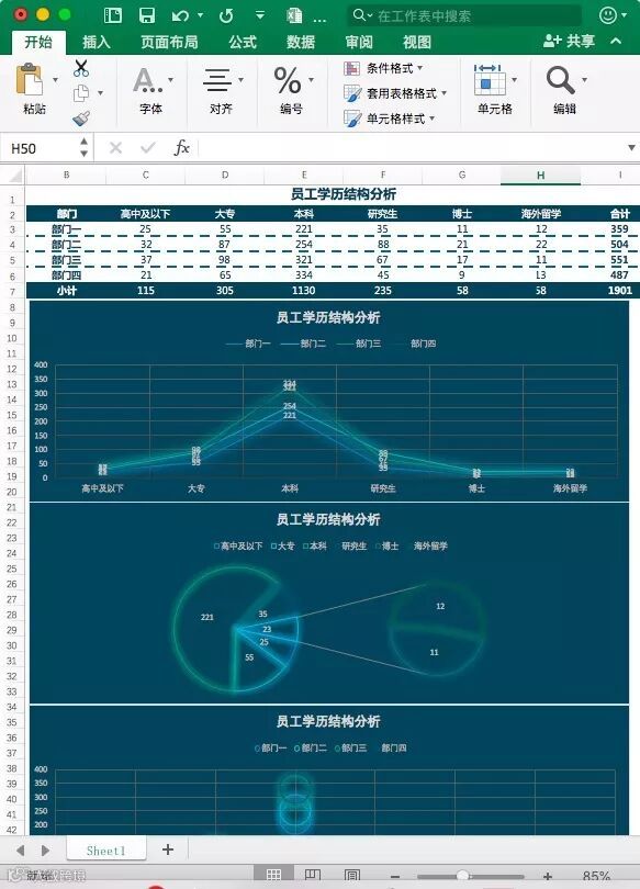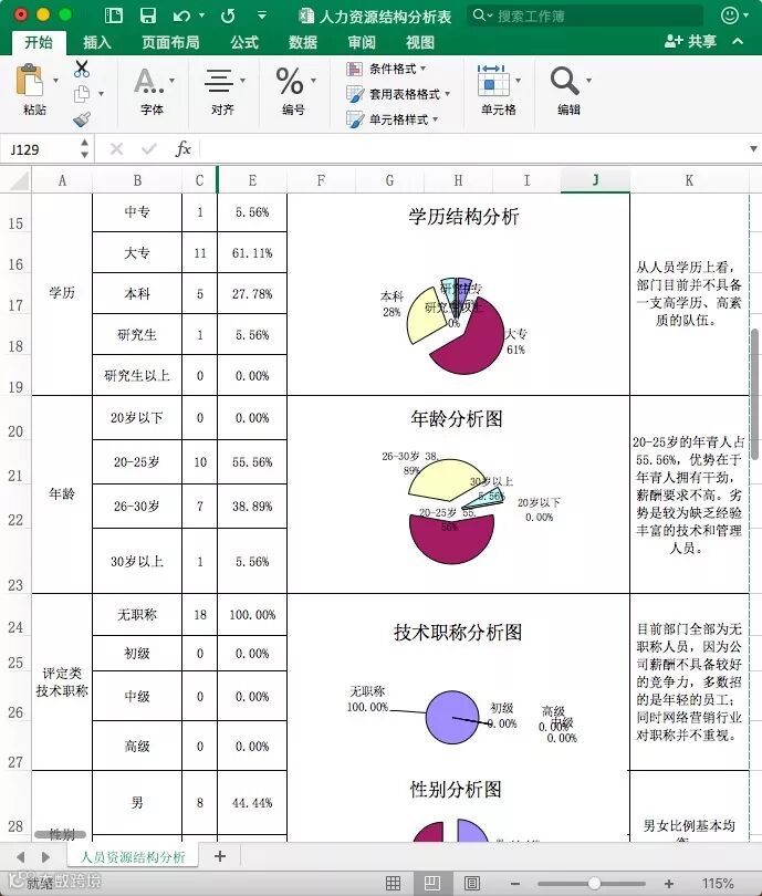 10份人员结构分析Excel,可根据数据自动生成图表,分析内容包括学习、性别、人数、入离职等等。