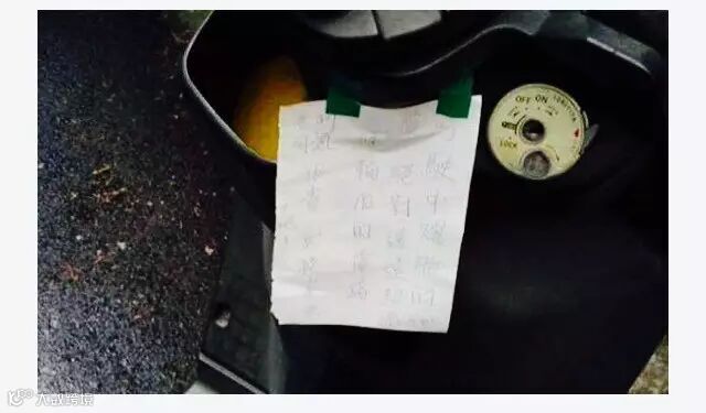 ▼他写了张纸条贴在机车上,希望车主能多加留意。