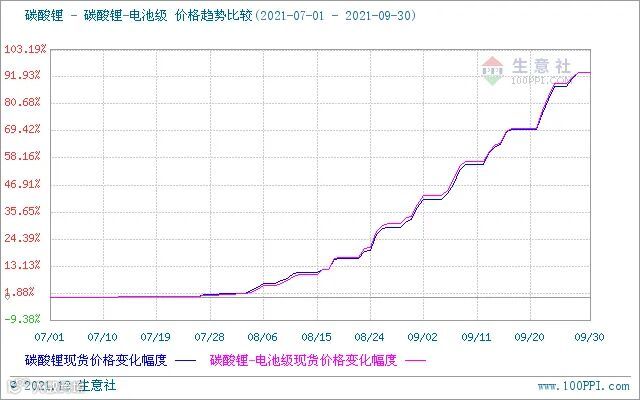 第二轮上涨区间(7.1-9.30):工业级碳酸锂涨幅93.76%、电池级碳酸锂涨幅93.81%