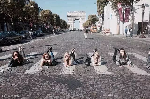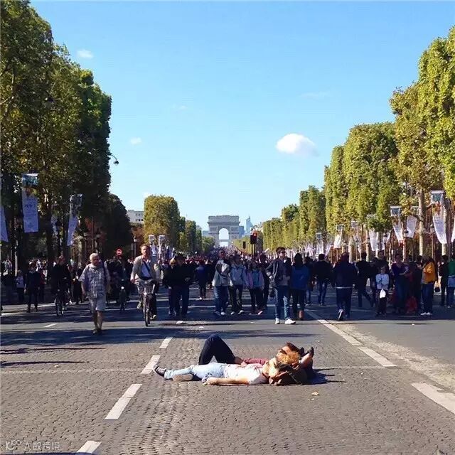 他们悠闲地躺在香榭丽舍大街晒太阳: