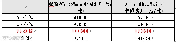 表1:2012年以来中国钨精矿和APT出厂价格统计