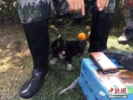 8月16日,这只幸存小狗被北京军区某防化团战士在天津港爆炸事故核心区救出!小狗“生化”与恩人们寸步不离。