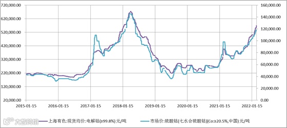 钴盐(硫酸钴等)则是制作锂电池正极材料(钴酸锂及三元正极材料)的重要原料。在锂电池正极中,钴具有防止正极腐蚀起火、提高正极材料的循环性能和倍率性能的作用。