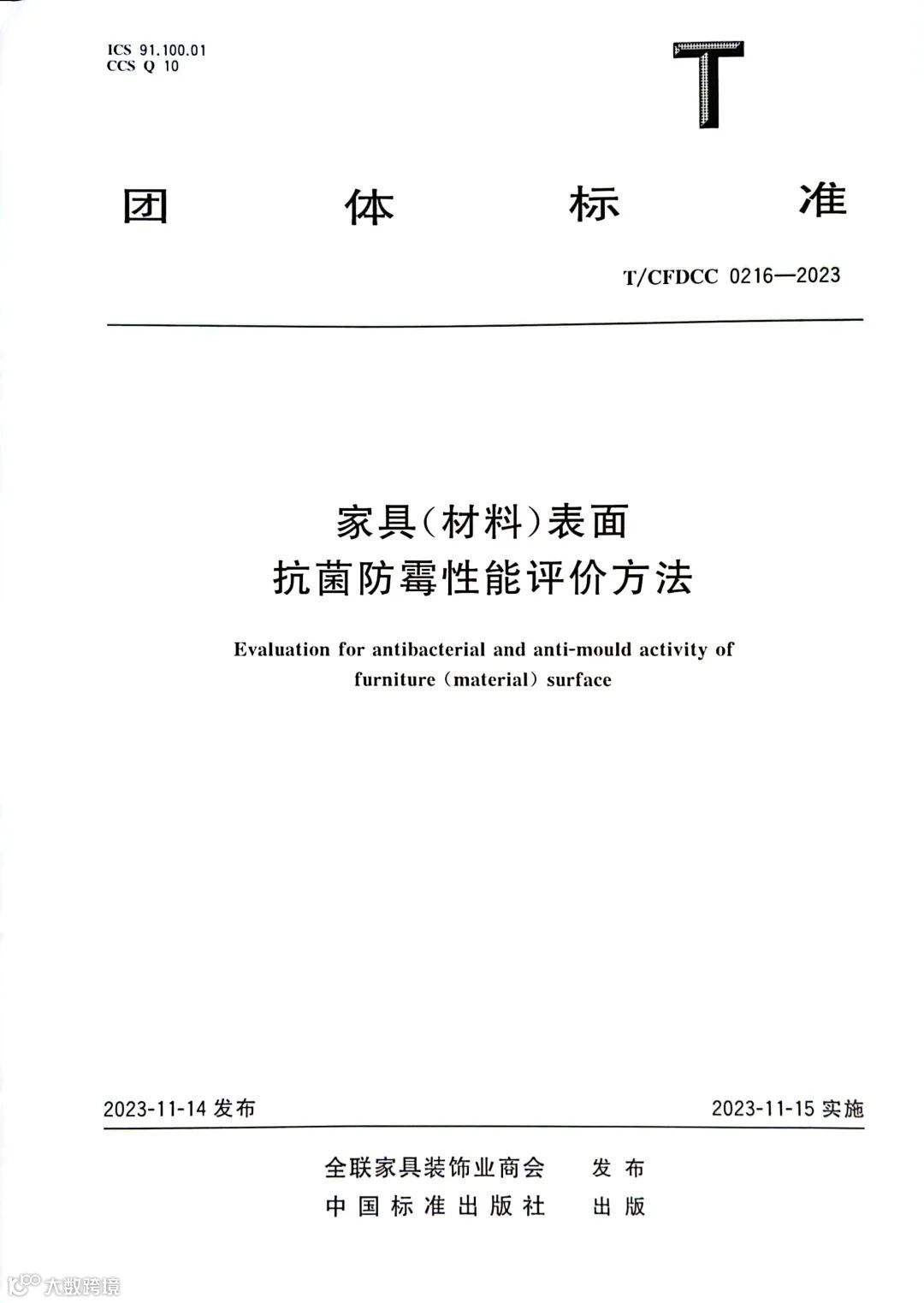 2023年11月14日,由全国工商联家具装饰业商会提出,成都天佑晶创科技有限公司主编,倾力建立的家居行业新标准——T/CFDCC 0216-2023《家具(材料)表面 抗菌防霉性能评价方法》正式发布;并于2023年11月15日面向全国范围内推广实施。