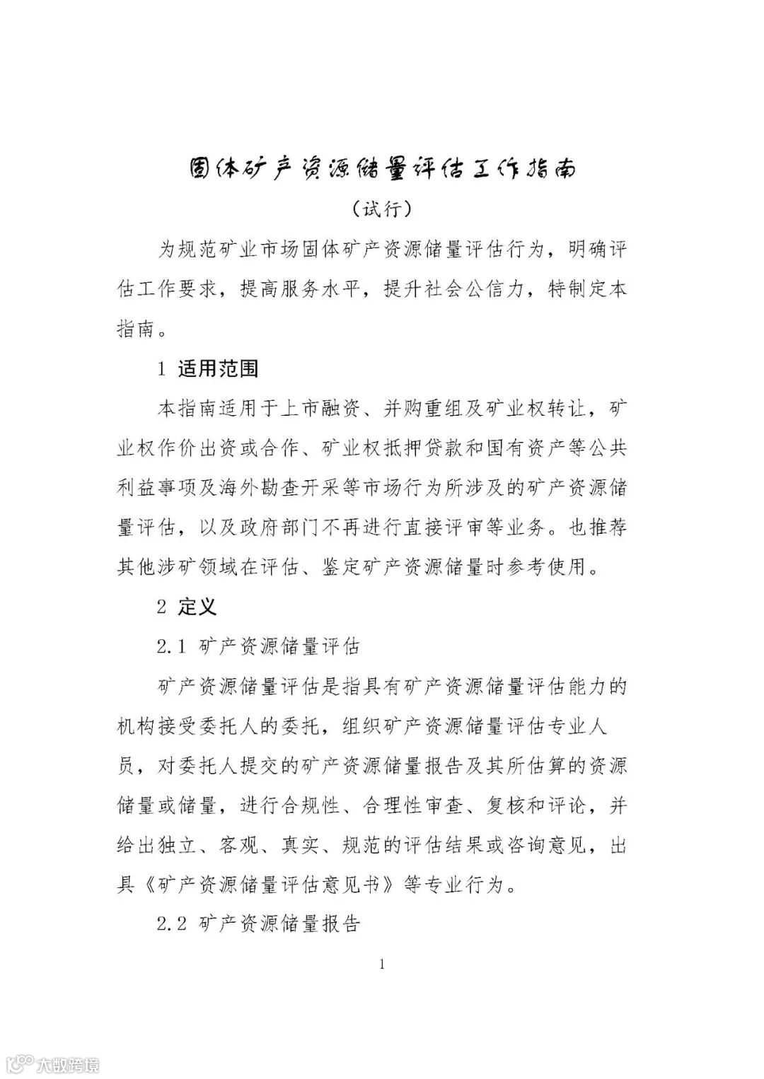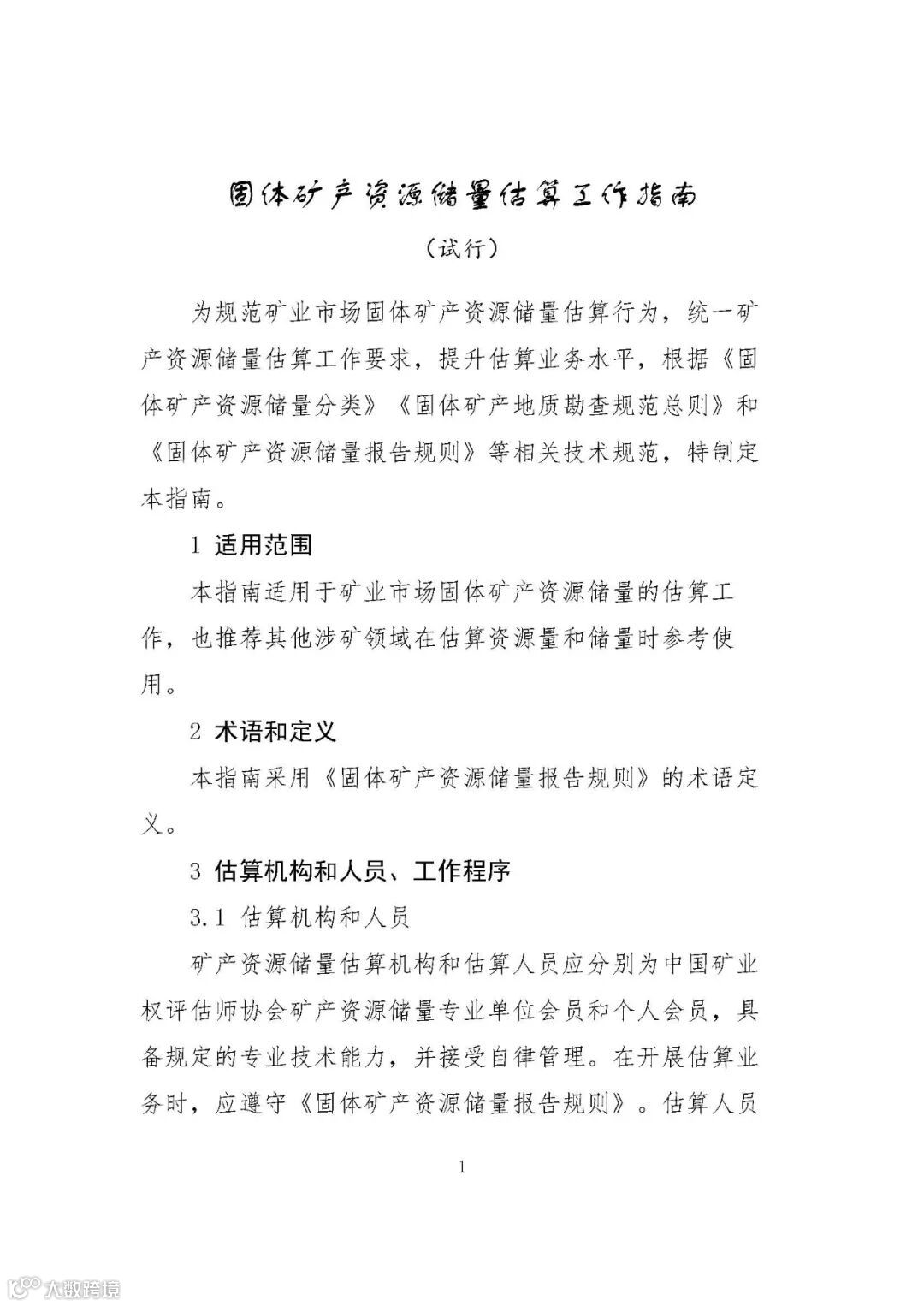 关于发布《固体矿产资源储量估算工作指南(试行)》的公告