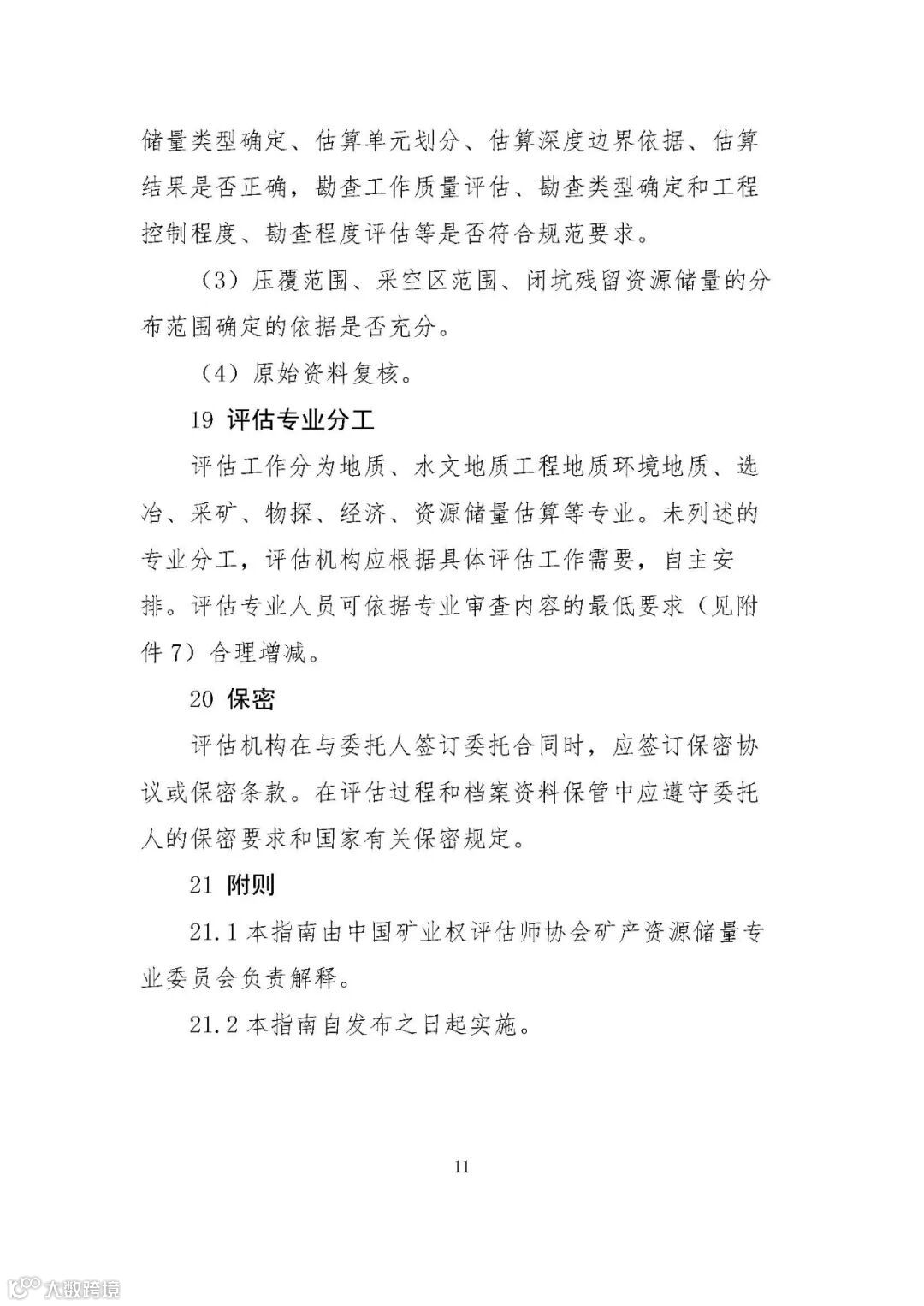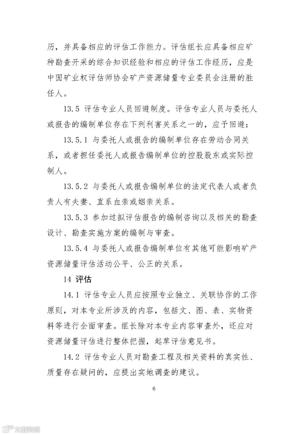 为贯彻落实《自然资源部关于推进矿产资源管理改革若干事项的意见(试行)》(自然资规〔2019〕7号),积极推进矿产资源储量市场服务体系建设,有效对接矿产资源储量报告国际通用标准,中国矿业权评估师协会矿产资源储量专业委员会制定了《固体矿产资源储量评估工作指南(试行)》,经会长办公会议研究决定,现予发布,请各单位会员和有关单位遵照执行,特此公告。