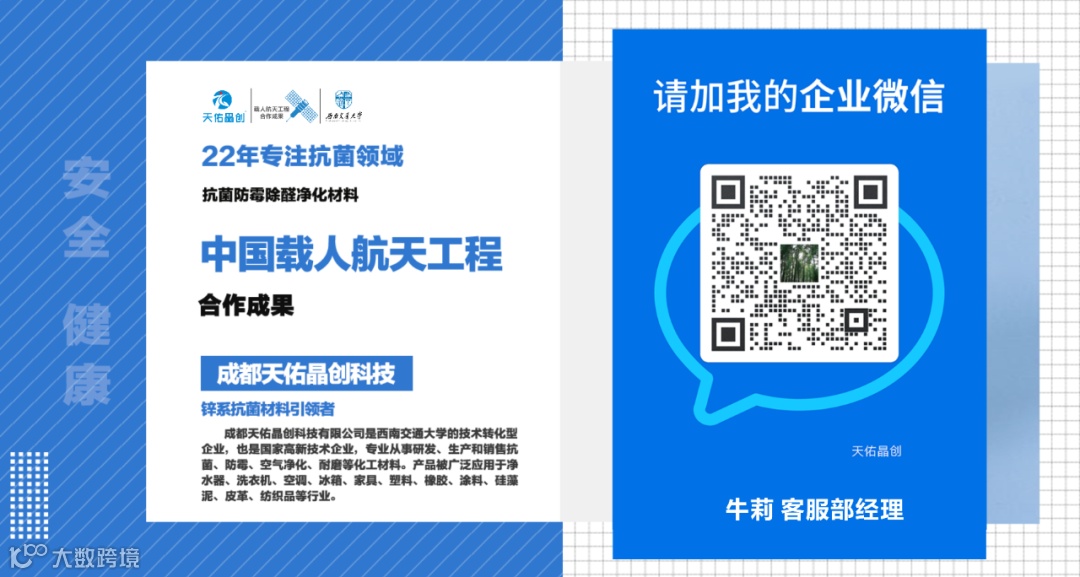 成都天佑晶创科技有限公司是西南交通大学的技术转化型企业;国内率先从事抗菌材料开发的专业制造商之一,国家高新技术企业、四川省“专精特新”中小企业、四川省瞪羚企业、CIAA驻四川办事处。