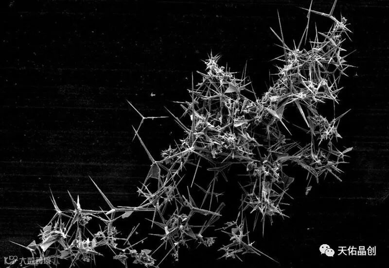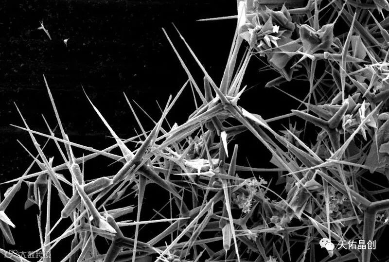 显微镜下的四针状氧化锌晶须,拥有纳米级针尖,微米级氧化锌材质。其具有空气净化、抗菌防霉、耐磨增强、减震降噪、吸波抗老化等功能,可广泛用于国防、电子、化工、轻工、交通等国民经济领域,被称为21世纪的重要新材料。