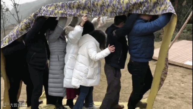 原来是在开人力坦克啊,两组各7名选手,哪组用时最短到达目的地就算赢,考验协调能力。