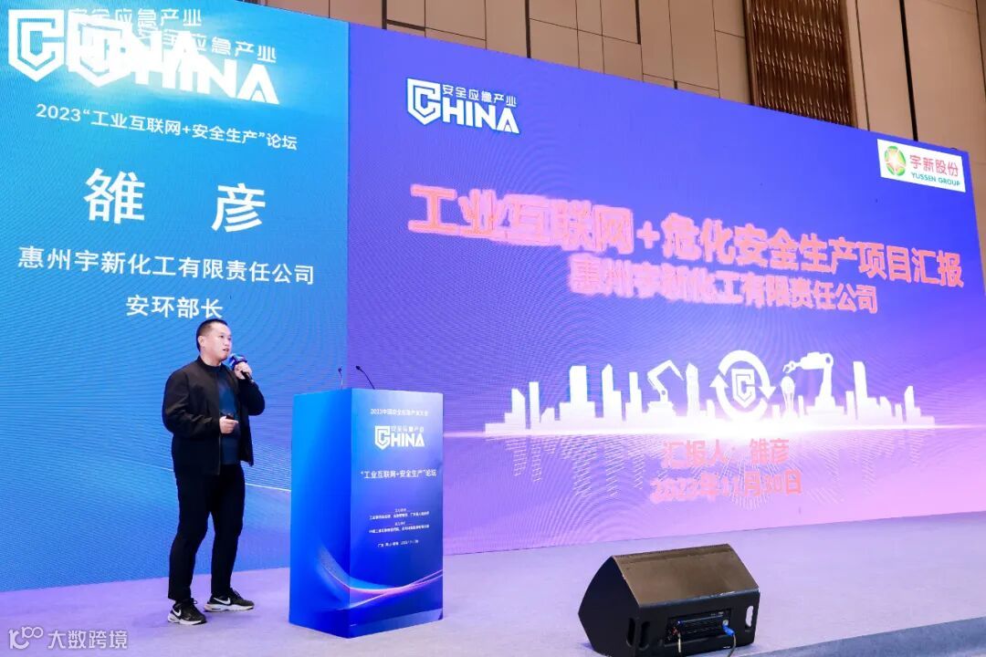 惠州宇新化工有限责任公司安环部长雒彦介绍了企业的“工业互联网+危化安全生产建设体系”,从重大危险源管理、人员定位、封闭管理、作业过程管理、智能巡检等多方面展示了企业安全生产的成效。