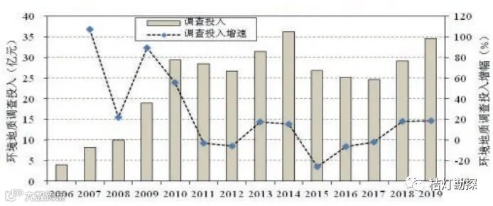 2006-2019年水文地质、环境地质与地质灾害调查投入变化