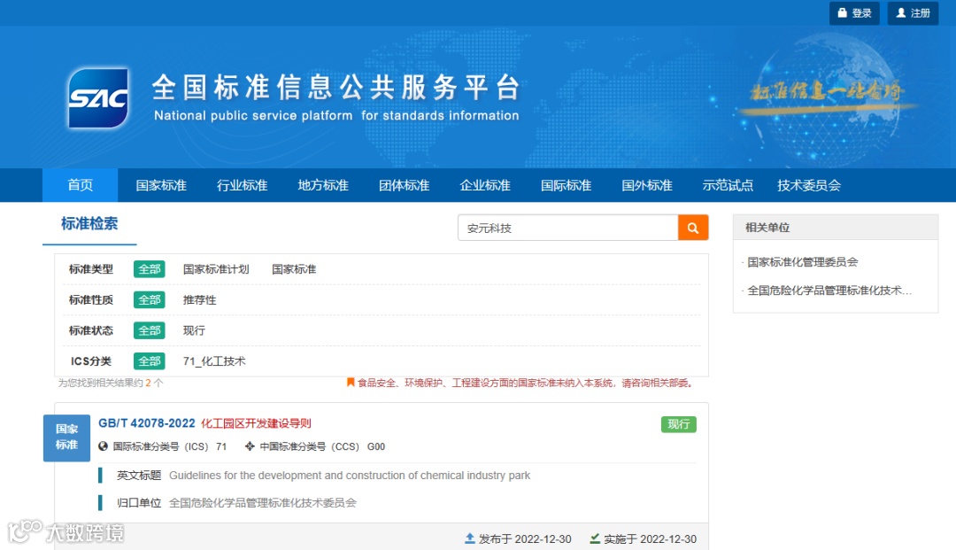 安元科技基于在化工园区建设领域的多年研究和实践,结合化工园区转型过程中的痛点以及对运营体系的优化需求,不仅作为主要编写单位参与了国标《化工园区开发建设导则》,还牵头起草了江苏省地方标准《智慧化工园区建设规范》和中国石油和化学工业联合会团体标准《智慧化工园区安全管理系统建设指南》、河南省团标《智慧化工园区设计、建设、验收规范》等的编制工作,为标准制定提供可行性和普适性的实践基础。