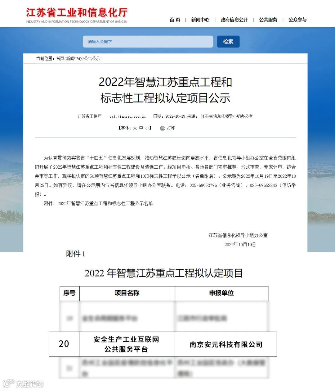 10月19日,江苏省信息化领导小组办公室正式公布“2022年智慧江苏重点工程和标志性工程项目”名单,「安元工业互联网公共服务平台」成功入选为“2022年智慧江苏重点工程项目”。