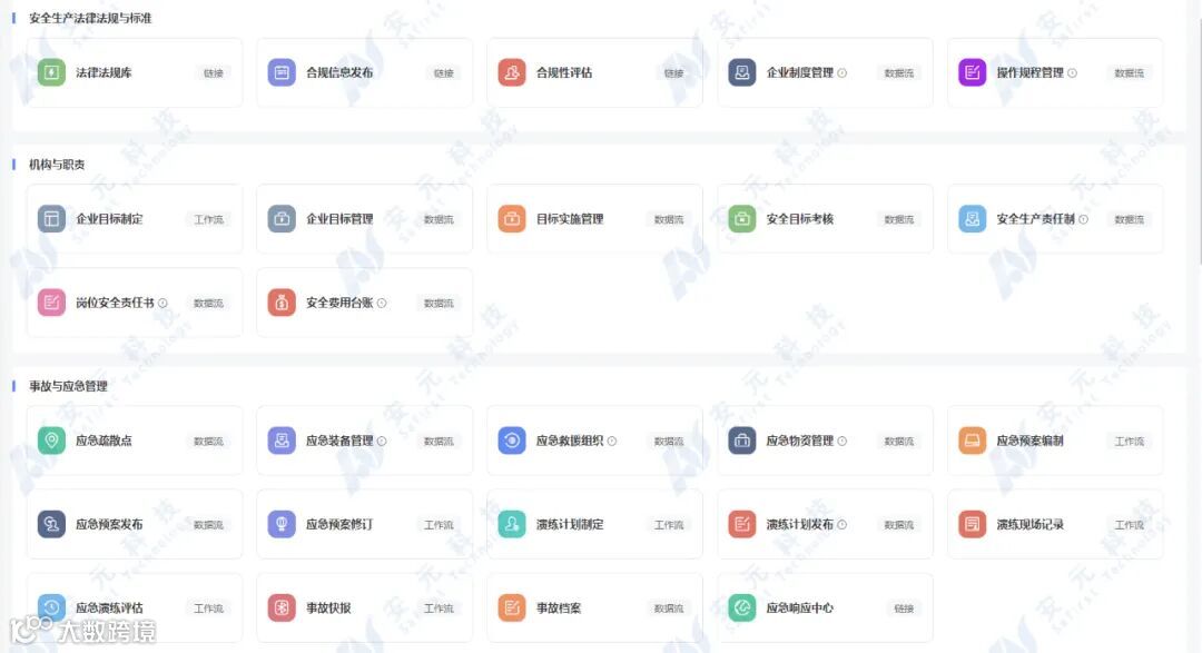 融合安全生产标准化、过程安全管理的要素(包括安全生产法律、法规和标准、机构和职责、风险管理、管理制度、培训教育、生产设施及工艺安全、作业安全、危险化学品管理、事故与应急等),实现危化企业安全生产全要素数字化管理,切实推动落实企业安全生产主体责任,全面提升企业安全生产管理水平。