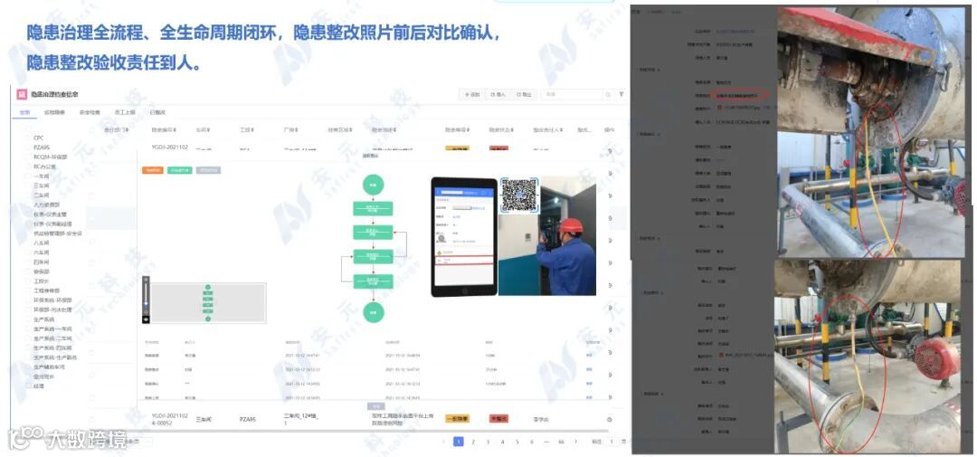 APP终端自动收到巡检任务推送,隐患治理全流程、全生命周期闭环,隐患整改照片前后对比确认,隐患整改验收责任到人。