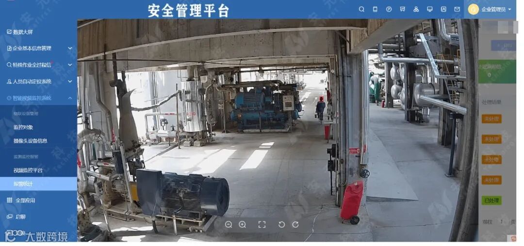 通过对企业内的生产装置、储存罐区装卸区、泵房(泵区)、放射性、爆炸性、剧毒性物质(器材)库房 (库区),以及各类危险化学品库房(库区)、特殊作业、日常巡检、停产检修等活动和主要区域的监控视频进行采集,利用AI技术对现场违规行为进行智能识别、异常状态识别,实时对企业、安全生产监控区域状态进行全面了解,让监控区域可管可控。
