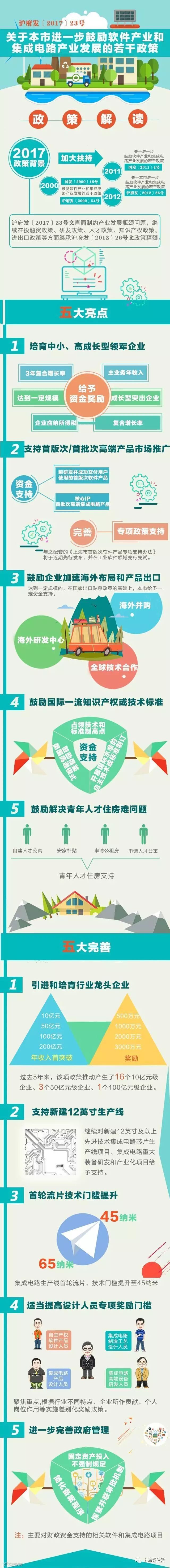 上海市政府日前发布了《关于本市进一步鼓励软件产业和集成电路产业发展的若干政策》(沪府发〔2017〕23号,简称“23号文”),这是继2012年市政府发布的《关于本市进一步鼓励软件产业和集成电路产业发展的若干政策》(沪府发〔2012〕26号,简称“26号文”)后本市持续鼓励软件和集成路产业发展的重大举措。