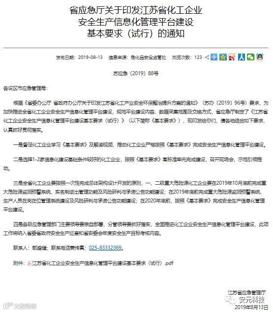安元科技“化工企业安全生产信息化管理平台”,真切落实化工企业安全生产管理细节。完全符合政府政策96号文、88号令对于化工企业安全环保整治及安全生产信息化管理平台的具体建设要求。自推广以来,受到省政府及应急管理厅等各级领导的重视及大力支持。