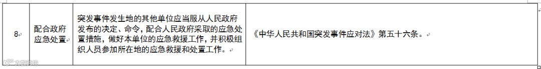本要素包括法律法规识别、法律法规转化、建立应急管理制度三个项目。