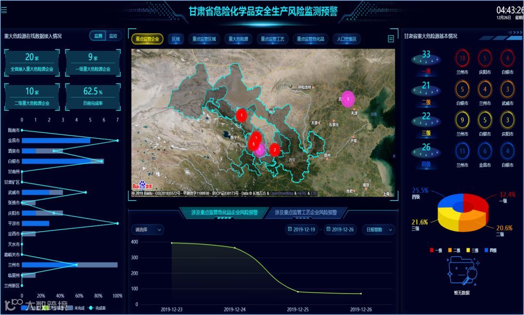 依据全省统一的数据标准规范,建立全省安全生产云数据中心,实现安全生产信息一张表,做到“一数一源、一源多用,来源可循,去向可追”,避免了“数据孤岛”,为后期全省安全生产形式预测预警、大数据分析奠定基础,实现甘肃省企业一张地图、隐患一张图、风险一张图,消除了监管盲点。